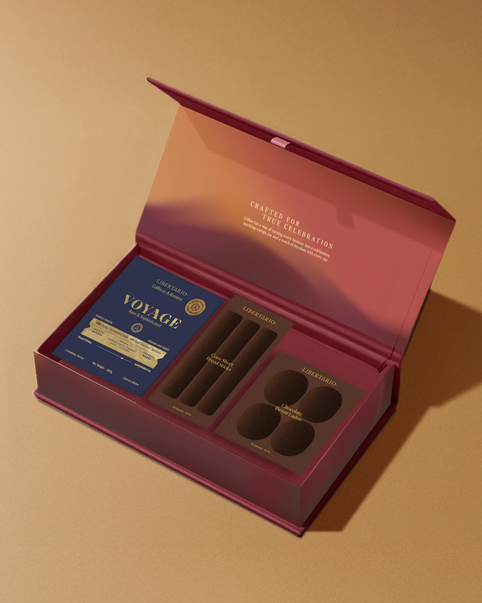 This box contains: 200gm Voyage Single Origin, 10 choco breadsticks, and 4 chocolate besan ladoos.